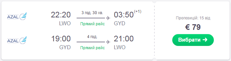 Прямой перелет на 10-17 декабря 2017 года и на 4-11 марта 2018 года авиакомпании Azerbaijan Airlines из Львова в Баку за 79 евро. Эти даты для акционных перелетов – не единственные.