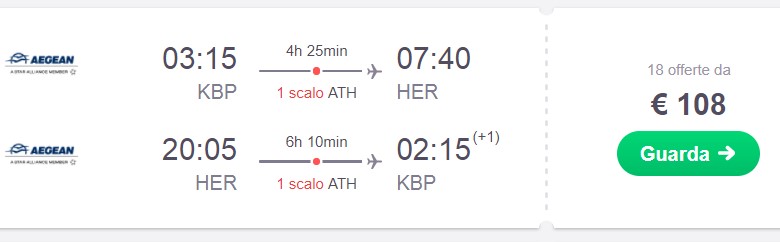 Київ – Іракліон (Крит), 28 жовтня-11 листопада – €96 в обидва боки. По дорозі пересадка в Афінах.