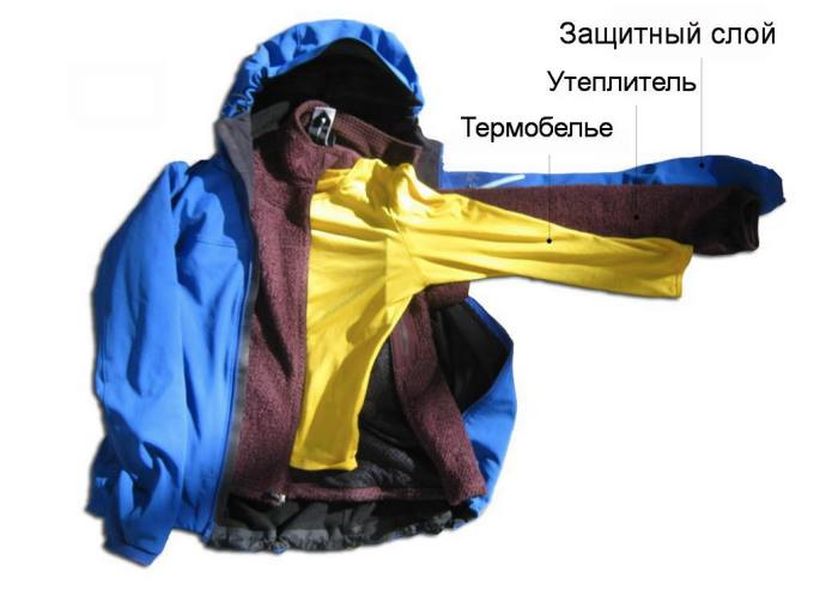 Рекомендуємо стандартний варіант тришарового одягу для гірського туризму:
