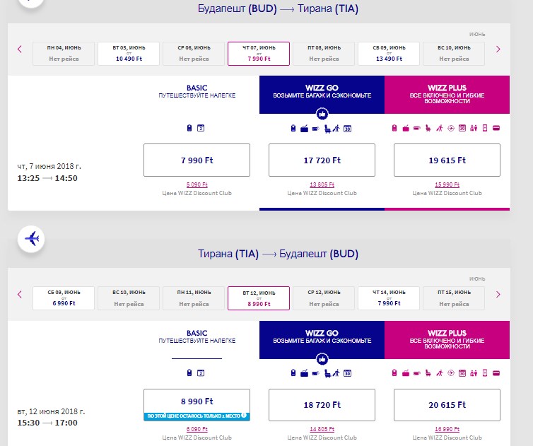 Крок 2. Будапешт – Тирана 7-12 июня – 38 євро для членів Wizz club. Для всіх пасажирів – 58 євро. У два боки.