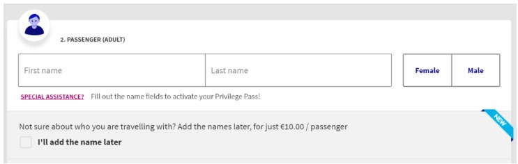 При створенні заявки на бронювання досить вказати тільки одне ім’я і додати пасажирів без вказівки їхніх імен, сплативши додатковий збір.
