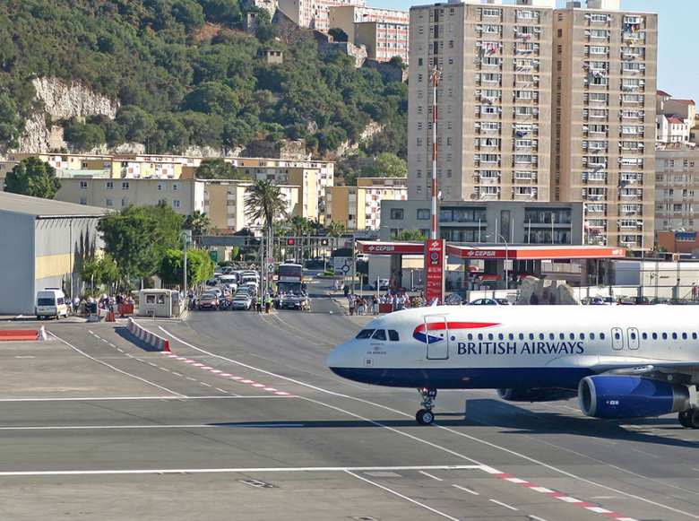 Скала Гибралтара, которая находится слишком близко от взлетно-посадочной полосы, оставляет немного места для маневров. Приближающиеся самолеты должны резко снижаться над заливом Альхесирас, прежде чем приземлиться на землю. Аэропорт Гибралтара – один из немногих аэропортов мира, в котором взлетно-посадочную полосу пересекает автомобильная магистраль. Автомобили и самолеты терпеливо уступают друг другу дорогу.