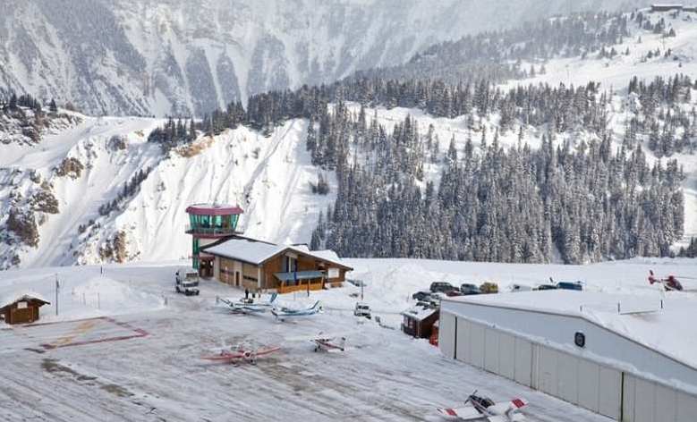 Куршевель – известный горнолыжный альпийский курорт, где отдыхает мировая элита. Сильно занятые политики и базнесмены предпочитают прилетать в поселок на своих самолетах. Короткой взлетно-посадочной полосы длиной 525 м не хватает для разгона, поэтому пилоты взлетают, разгоняясь с крутой горки.