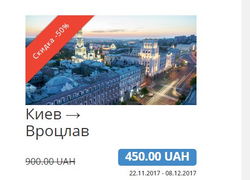 Але перевізник оголосив знижку! І тепер у Вроцлав можна поїхати за 450 грн.! Зі Львова – за 300 грн., з Вінниці – за 450 грн. І так далі!