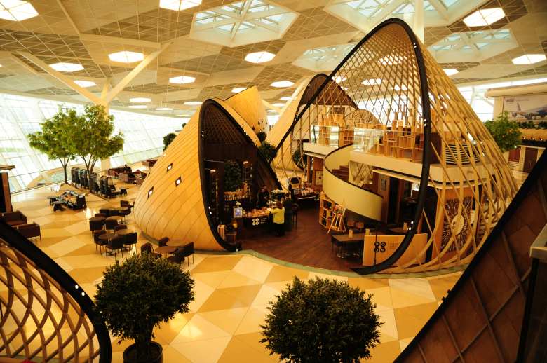 Первое, что удивляет в Баку – футуристический дизайн аэропорта. Но как это уютно! Кафе, бары, торговые киоски архитекторы спрятали в деревянные полусферы. По задумке дизайнеров, причудливые, но функциональные конструкции воплощают идею восточного гостеприимства и радушия. На фото – библиотека. В один из прилетов я зашла в библиотеку, полистала книгу и положила ее на пустую полку. В следующий раз – книга лежала на месте. И понятно – все получают информацию из планшетов и телефонов.