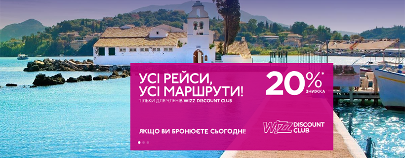 Авіакомпанія Wizz Air надає знижку 20% всім учасникам Wizz-клубу, які забронюють квитки сьогодні, 5 червня.