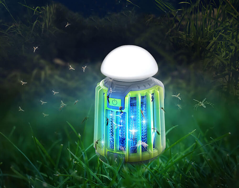 Номер один в нашем списке – лампа или фонарь-ловушка KILNEX. Принцип действия очень прост: ультрафиолетовый свет и таблетки-приманки для комаров, имитирующие запах человека (изготовлены на натуральной основе, входят в комплект), привлекают насекомых. Попадая в клетку, комары умирают от небольшого электрического разряда. Такую лампу можно использовать не только как ловушку, но и как осветительный прибор. Устройство оснащено аккумулятором 2000 мАh, что обеспечивает 30 часов беспрерывной работы. Весит фонарь-ловушка 200 г. Устройство водонепронецаемо (его можно мыть под краном), а также не тонет при попадании в воду.