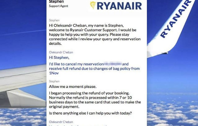 – якщо ви не згодні з новими правилами, можете здати квиток і отримати повне повернення коштів. Це найпростіше зробити в онлайн-чаті (дивіться скріншот). У розділі “управління бронюванням” немає опції здати квиток, так як всі квитки за замовчуванням є безповоротними.