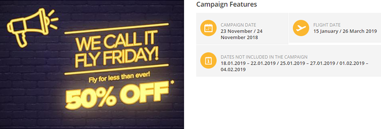 Период акции: только 23 ноября 2018 г. Период путешествий: 1 декабря 2018 – 30 марта 2019 г.