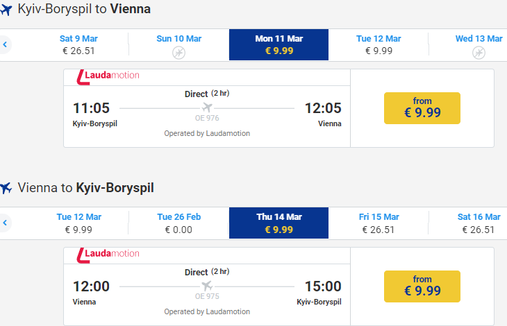 Квитки Київ – Відень. Ціна від 9,99 євро в один бік, 20 євро у два боки
