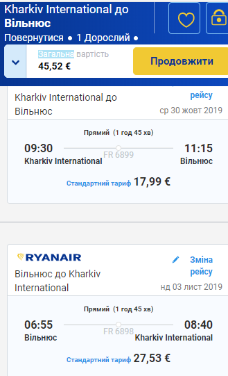 Харків – Вільнюс, 30 жовтня -3 листопада – 46 євро