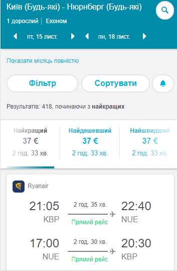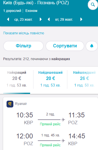 Бувають акції авіакомпаній чи святкові знижки. А Мандрія вміє знайти тарифи – на “найдешевші” дати в обидва боки. Отож, у Європу з Києва, Львова, Харкова, Одеси від €20 у два боки.