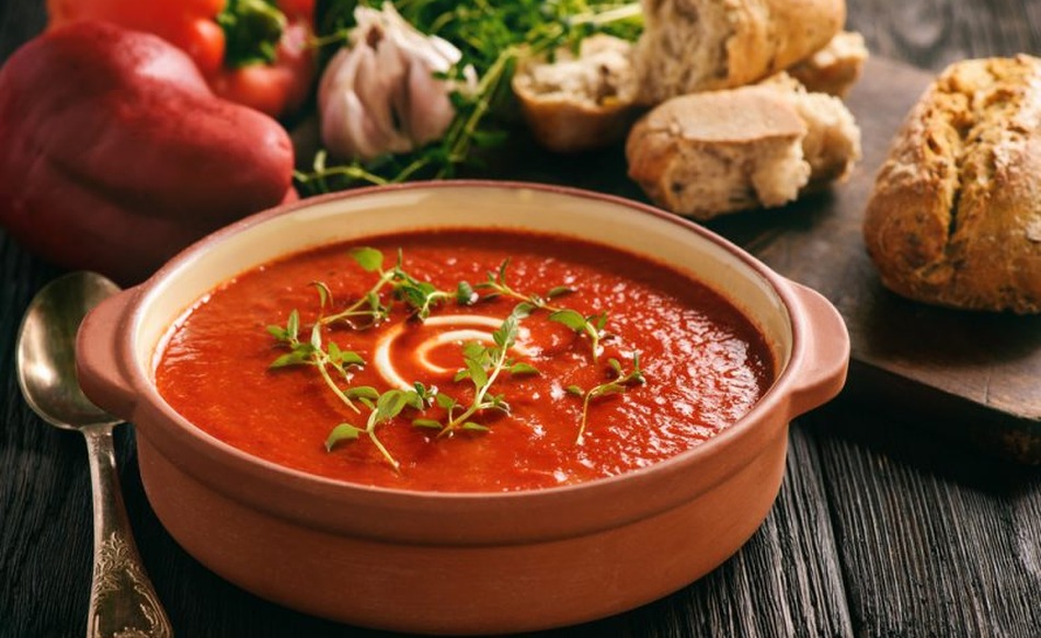 Ще один традиційний польський суп – томатний. Готують його на основі м’ясного бульйону та помідорів або з томатною пастою. Приправляють базиліком, цукром та дрібкою жижа кориці.