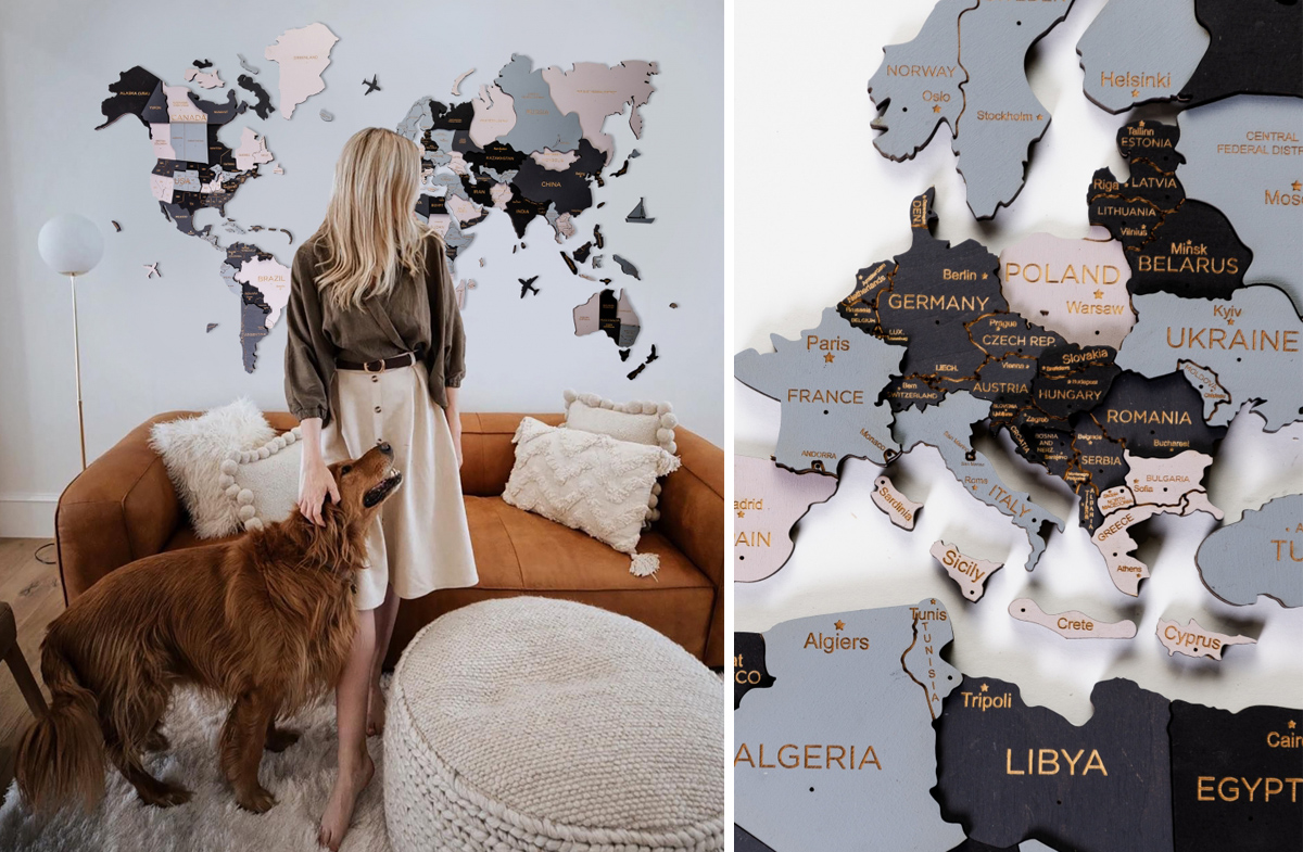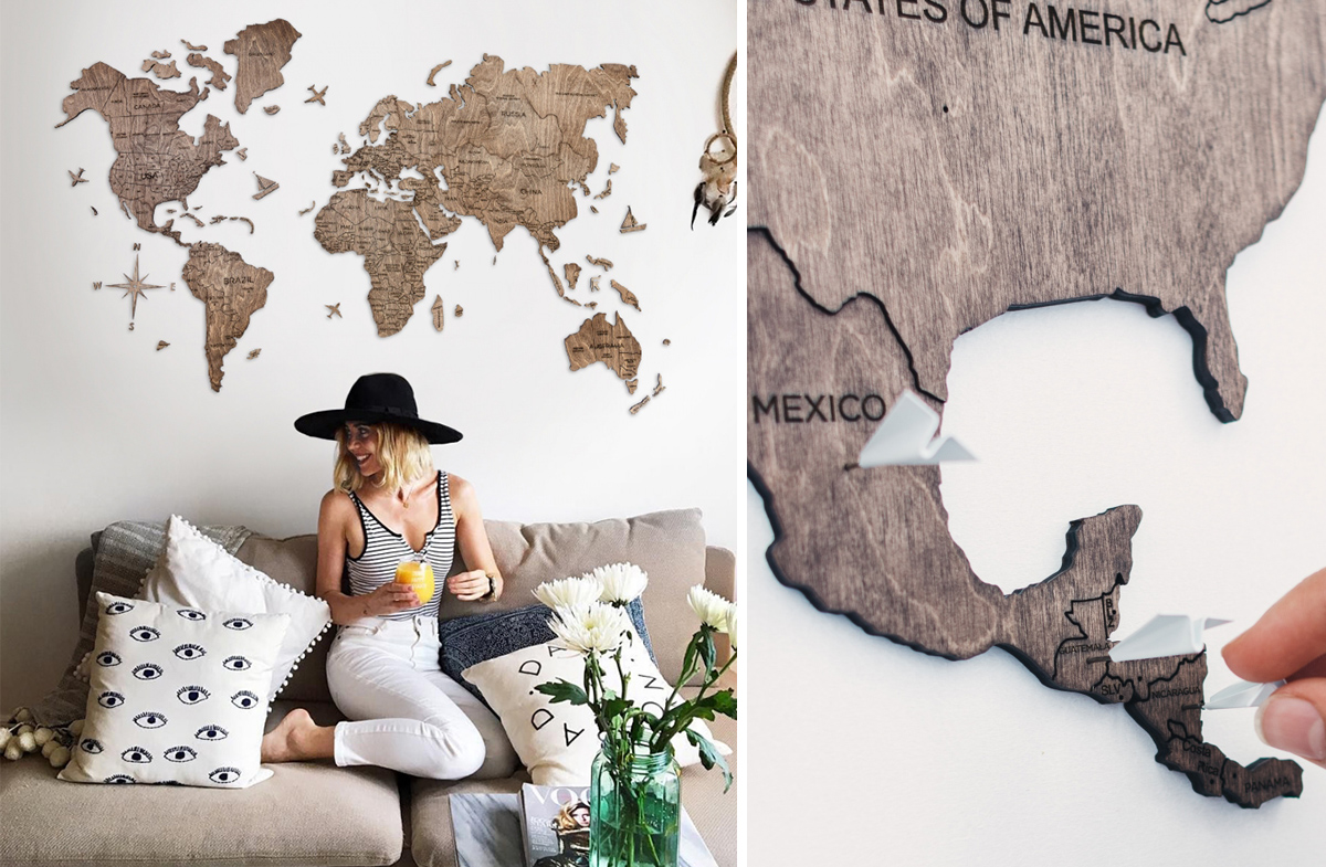 Кохання – чудова і бурхлива річ. Воно насичене емоціями, подіями та подорожами. Якщо ваше – таке ж об’ємне і органічне, як ця мапа з натурального дерева, – не вагайтеся! Класний і дуже символічний варіант для коханої людини. Для фанатів крутого дизайну інтер’єрів випускають мапи у чорному і сірому колорах. І не забудьте про додаткові елементи з дерева: компас (як нагадування, де знайти того, хто цю круту штуку подарував), літачки (як уособлення вашої історії подорожей), та кораблі (а що, між іншим у морські круїзи їздять не тільки європейські пенсіонери).