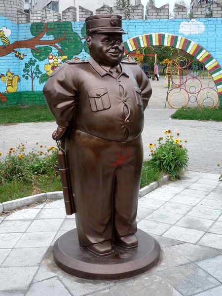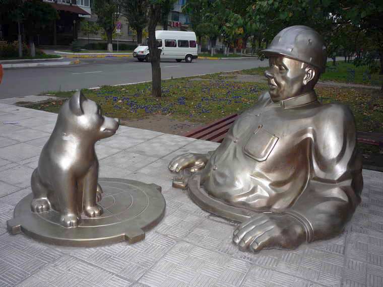 В тех же Горишних Плавнях увековечен гаишник, герой современного фольклора, воплотивший в своем облике жадность и ленивое добродушие.
