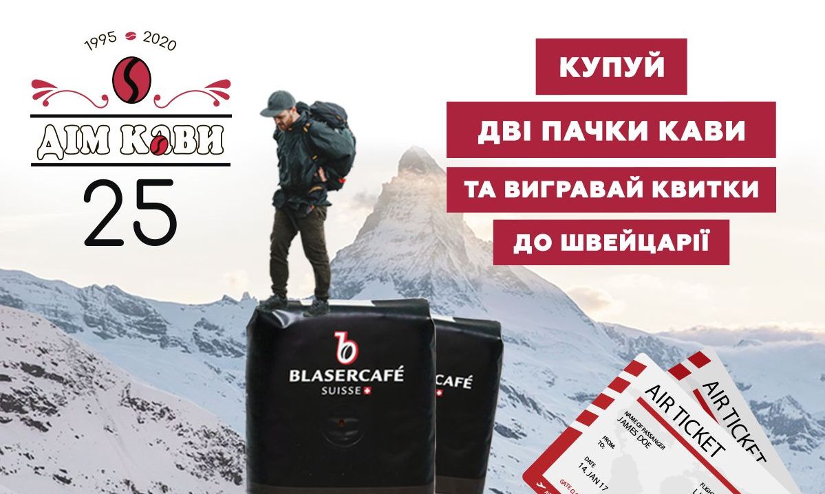 Кожного місяця мережа Дім Кави буде розігрувати 25 цінних подарунків серед учасників акції, головний приз — два квитки до Швейцарії!