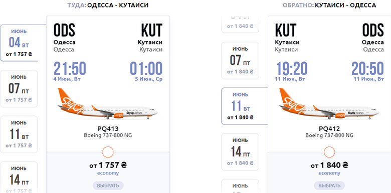 | Одеса – Кутаїсі | Вт, пт | 21:50 | 01:00 | 04.06.19 |