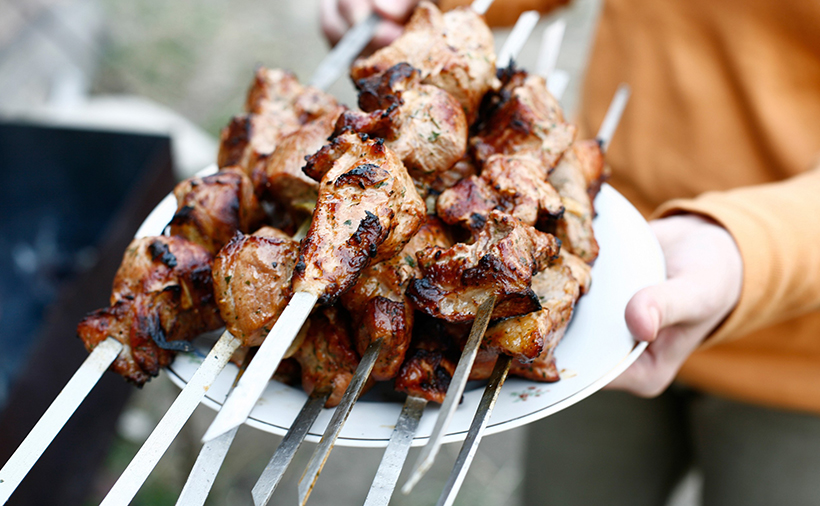 На «столе» Армении много мясных блюд: долма – голубцы в виноградных листьях с начинкой из мясного фарша и овощей, шашлык хоровац, лахмаджун, хаш. Их органично дополняют салат из авелука, рулет из баклажанов, суп спас, лепешка жингялов хац, рыбный кчуч и др. На десерт подают сладкий суджух, пирожные гата, медовую пахлаву, сухофрукты. Ну и, разумеется, какой же обед без ароматного лаваша!Пьют тут виноградное или гранатовое вино, опять же коньяк и крепкий кофе по-армянски, который варят в медной турке на раскаленном песке.