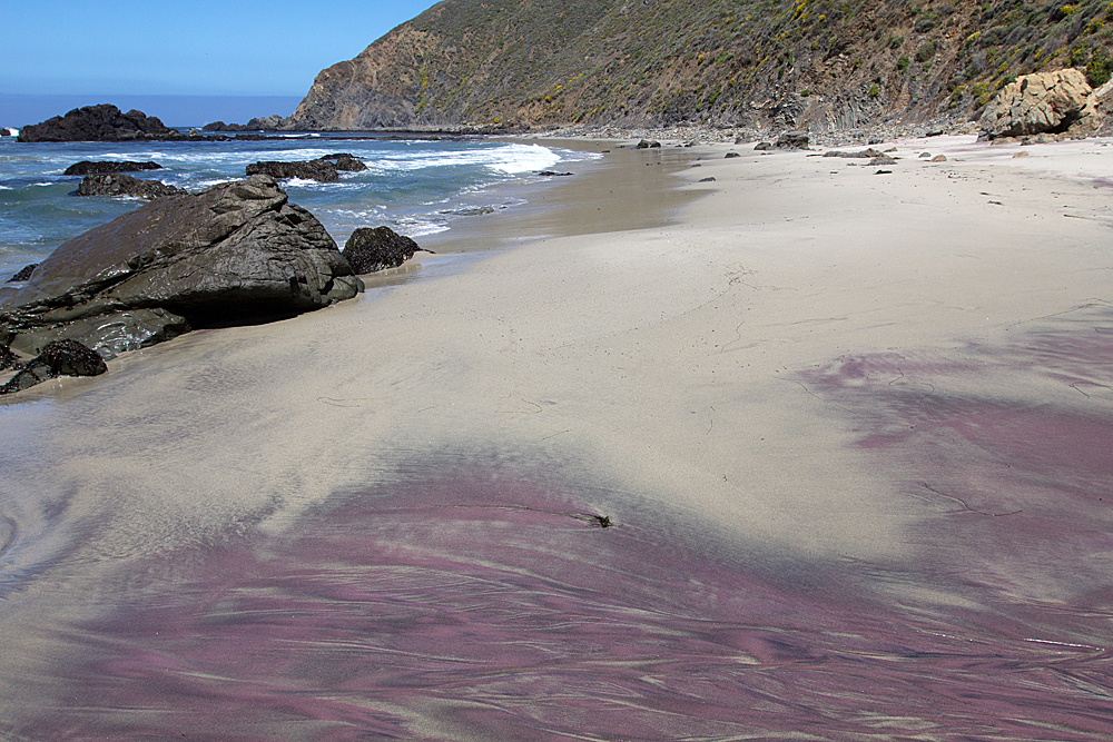 Окрестные холмы содержат минерал спессартин из группы гранатов, который еще и умеет менять цвет в зависимости от освещения. Поэтому пляж Пфайффер-Бич в разное время дня может предстать перед вами окрашенным в разные оттенки. Сначала он будет лиловым, потом вдруг станет бордовым, лавандовым, фиолетовым, пурпурным…