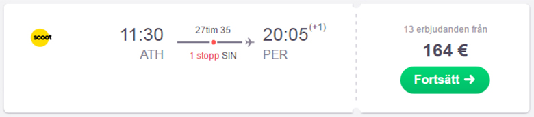 Так, Афіни – Перт – від 164 євро в один бік. Дати вильоту можуть бути: 20, 24, 29 червня.
