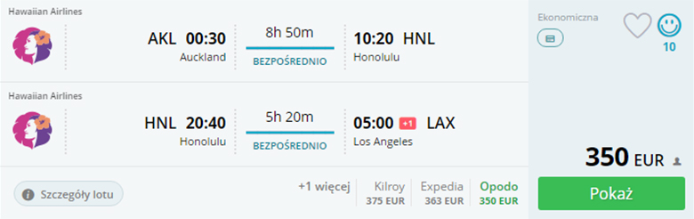 Далее следует рейс Окленд – Гонолулу: 12-16 октября + 16-20 октября летим из Гонолулу в Лос-Анджелес за 350 евро. Перелеты прямые.
