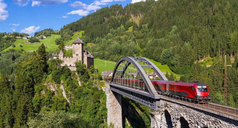 Вы увидите всевозможные яркие картинки исторической области Тироль, множество виадуков. Проедете по железному арочному мосту Трисанна высотой в 87 м над одноименной рекой, полюбуетесь окружающими пейзажами и старинным замком Вайсберг. Но главное – это Альпы!