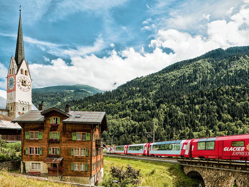 Glacier Express соединяет два респектабельных курорта Швейцарских Альп: Санкт-Мориц и Церматт. Это 7,5 часов уникальных альпийских видов, реки Рейн и Рона, сотни мостов и тоннелей.