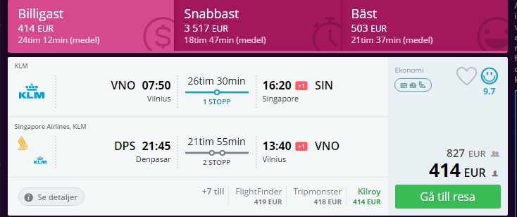 З Вільнюса можна летіти у Південно-Східну Азію: Вільнюс – Сингапур / Балі (Денпасар) – Вільнюс, 7-27 лютого – €414.