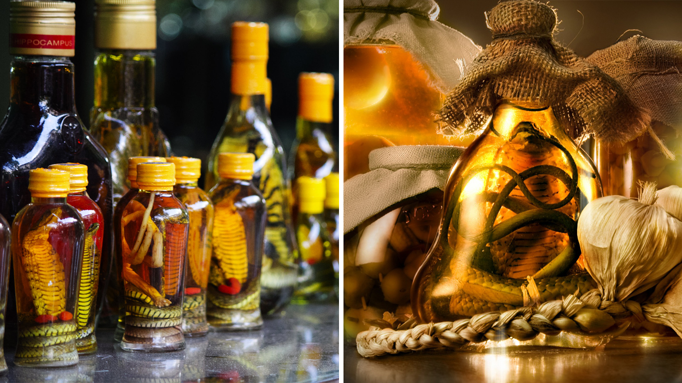 Змея в бутылке смотрится эффектно, не поспоришь. Но многие ли захотят выпить алкоголь, настоянный на змеях, скорпионах и прочей ползучей красоте? Китайцы утверждают, что это зелье очень полезно для здоровья. Однако, глядя на такую бутылочку, поверить сложно. Кроме того, змей для этого убивают и ловят специально. Жалко животных, если честно.