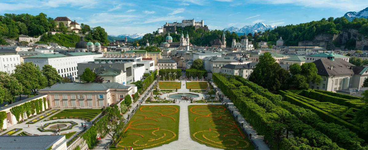 Зальцбург с VIII по XIX века был резиденцией архиепископов. По приказу одного из них, а именно Вольфа Дитриха, в 1606 г. построили дворец Мирабель (в переводе с итальянского «mirabile» – «достойная восхищения», «bella» – «красивая») и разбили великолепный парк. А создал он всю эту красоту для своей возлюбленной Саломеи Альт, которая родила ему 15 детей. Сейчас во дворце находится резиденция бургомистра, зайти туда можно абсолютно спокойно и подняться по мраморной лестнице, украшенной ангелочками к парадному залу, где сейчас часто проводятся бракосочетания.