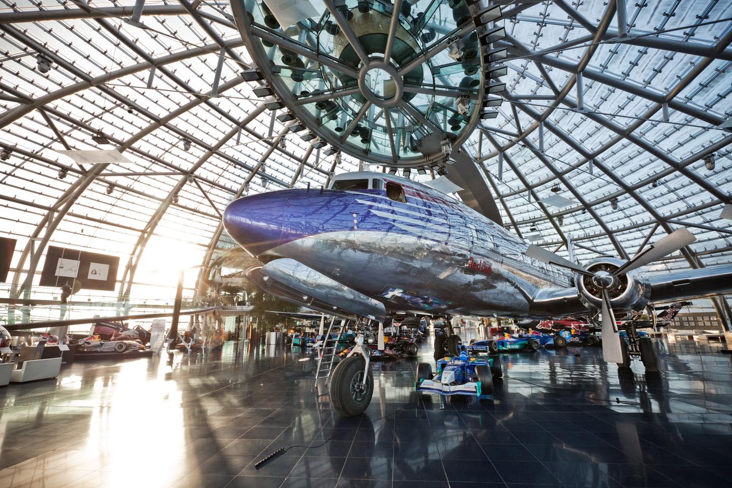 Ангар-7 – объект, площадью 3700 кв м, я бы назвала ультрасовременным. Находится он в аэропорту Зальцбурга. На постройку здания ушло 1200 тонн стали и 380 тонн специального стекла. Конструкция напоминает крыло, и не случайно, так как является ангаром для флота Flying Bulls и коллекции самолетов, вертолетов и гоночных машин Формулы-1. Принадлежит все это основателю Red Bull.