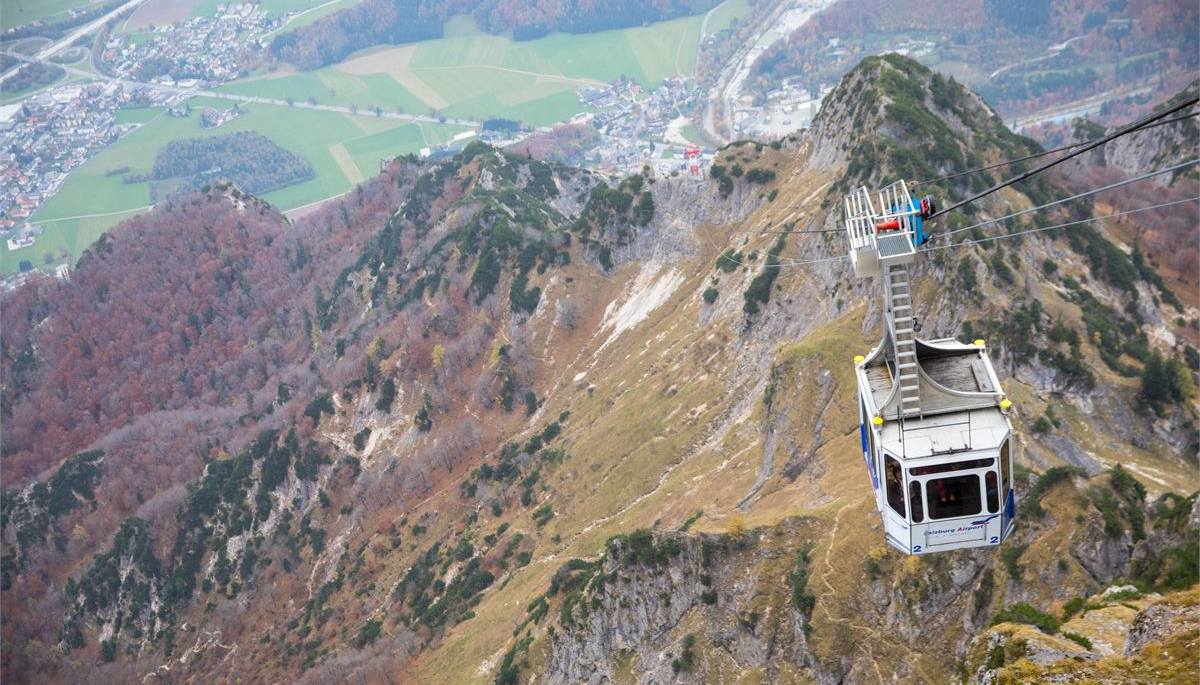 Поднимаясь на высоту 1800 метров в кабине-гондоле, туристы прилипают к окнам: открывающиеся виды просто великолепны. Через 10 минут мы уже на вершине, и виды становятся еще более захватывающими. При хорошей погоде Зальцбург виден как на ладони, просматривается вся долина Розиттенталь и даже озера этого региона.