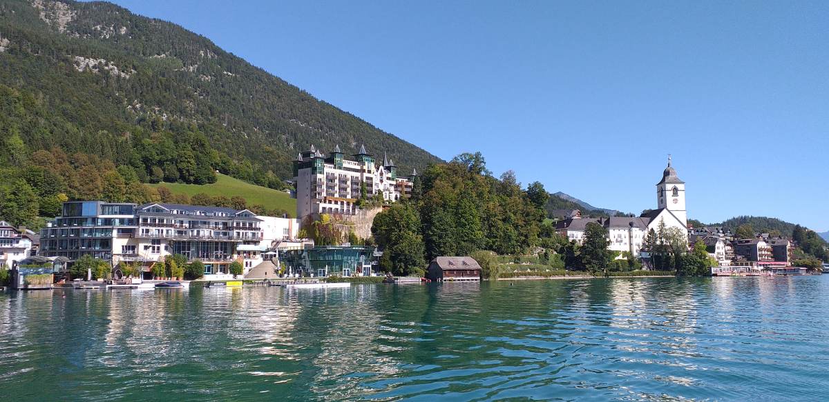 Кстати, вода в Вольфгангзее летом прогревается до 24 градусов, поэтому можно купаться и заниматься водными видами спорта.
