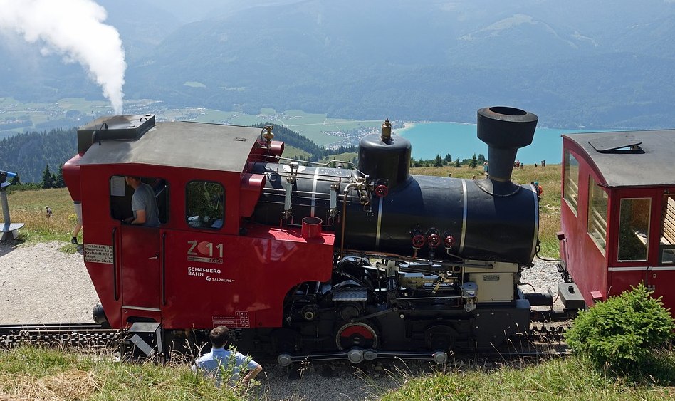 Высадились мы в приятном курортном городке Санкт – Вольфганг. После водной прогулки нашей целью была гора Шафберг. На высоту 1800 метров можно подняться и пешком, но куда интереснее было прокатиться на самом раритетном паровозике Австрии, который поднимается на самую вершину Шафберга по зубчатой железной дороге с 1893 года. Это самый крутой подъем в Австрии. И чем выше, тем более захватывающие виды из окна!