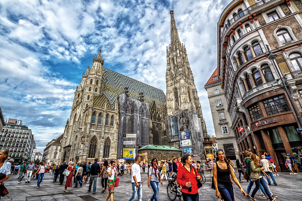 Здається, що цей шедевр архітектури, розташований на маленькій площі Стефанплац у самому серці Відня, чіпляється своїми шпилями за небо. Собор заснований у 12 сторіччі. У ньому поховані видатні люди Відня та члени родини Габсбургів