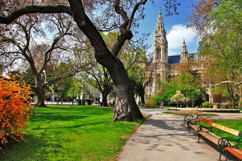Перед ратушей – большой Ратхауспарк в английском стиле, с фонтанами и многочисленными памятниками известным личностям. В теплый период года в парке танцы, музыка, с конца июня и до начала сентября бесплатные вечерние фильмы под открытым небом и на большом экране. Работают десятки ресторанов.