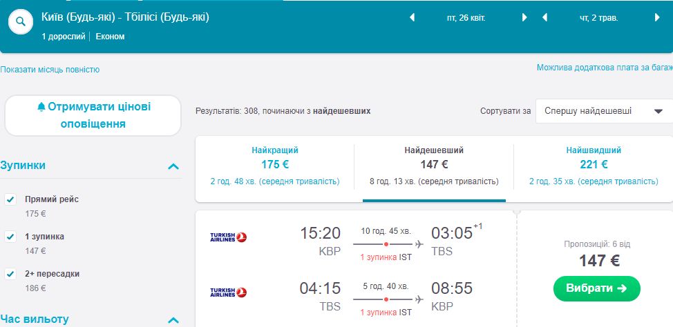 Київ – Тбілісі, 26 квітня – 2 травня – 146 євро