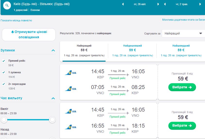Київ – Вільнюс, 26 квітня-2 травня – 59 євро
