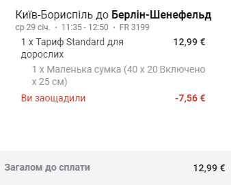 У вартість квитка авіакомпанії Ryanair входить ручна поклажа розмірами до 40х20х25 см.
