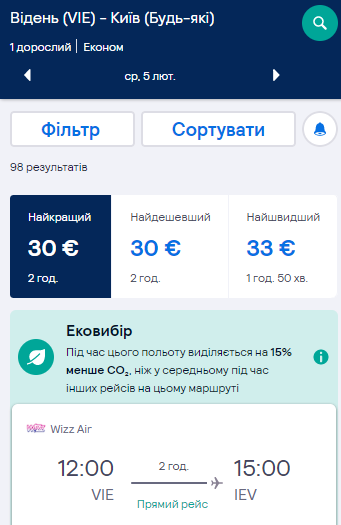Дата: 5 лютого. Ціна в один бік — €30, а для учасників wizz-клубу при бронюванні квиток буде коштувати €20.