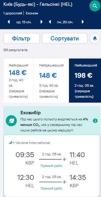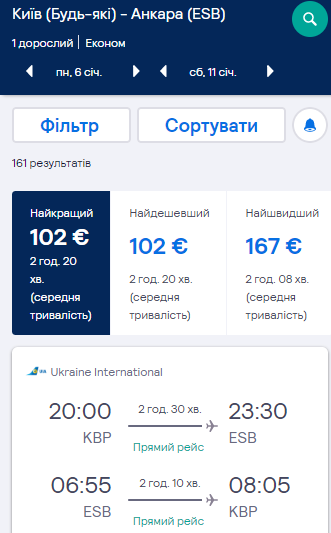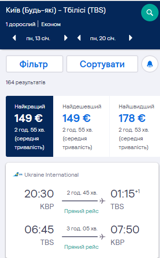 Деталі та ціниРейси з міста Києва. Ціни в один бік: