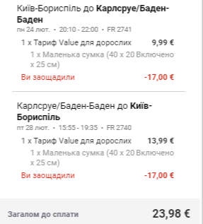 Київ — Карлсруе (Баден-Баден), 24-28 лютого — €24