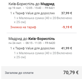 Київ — Мадрид, 19-24 лютого — €71
