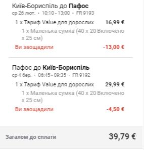 Київ — Пафос, 26 лютого – 4 березня — €40