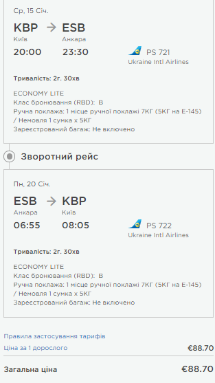 Київ — Анкара, 15-20 січня — €89