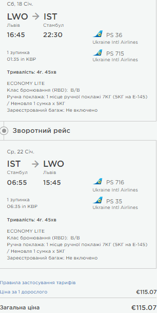 Львів — Стамбул, 18-22 січня — €115