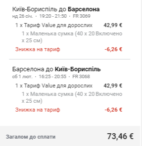 Київ — Барселона, 26 січня – 1 лютого — €73