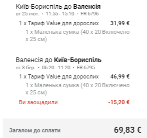 Київ — Валенсія, 25 лютого – 3 березня — €70