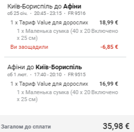 Київ — Афіни, 25 січня – 1 лютого — €36