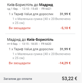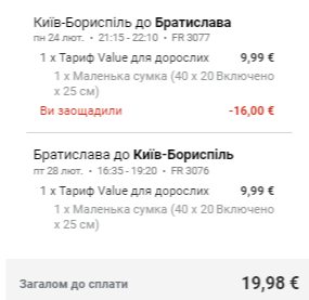 У вартість квитків входить ручна поклажа розмірами до 40х20х25 см.
